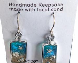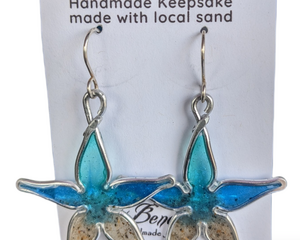 Starfish earrings filled with NC Beach Sand with an under wat...