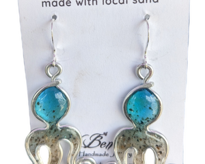 Octopus earrings filled with NC Beach Sand with an under wate...